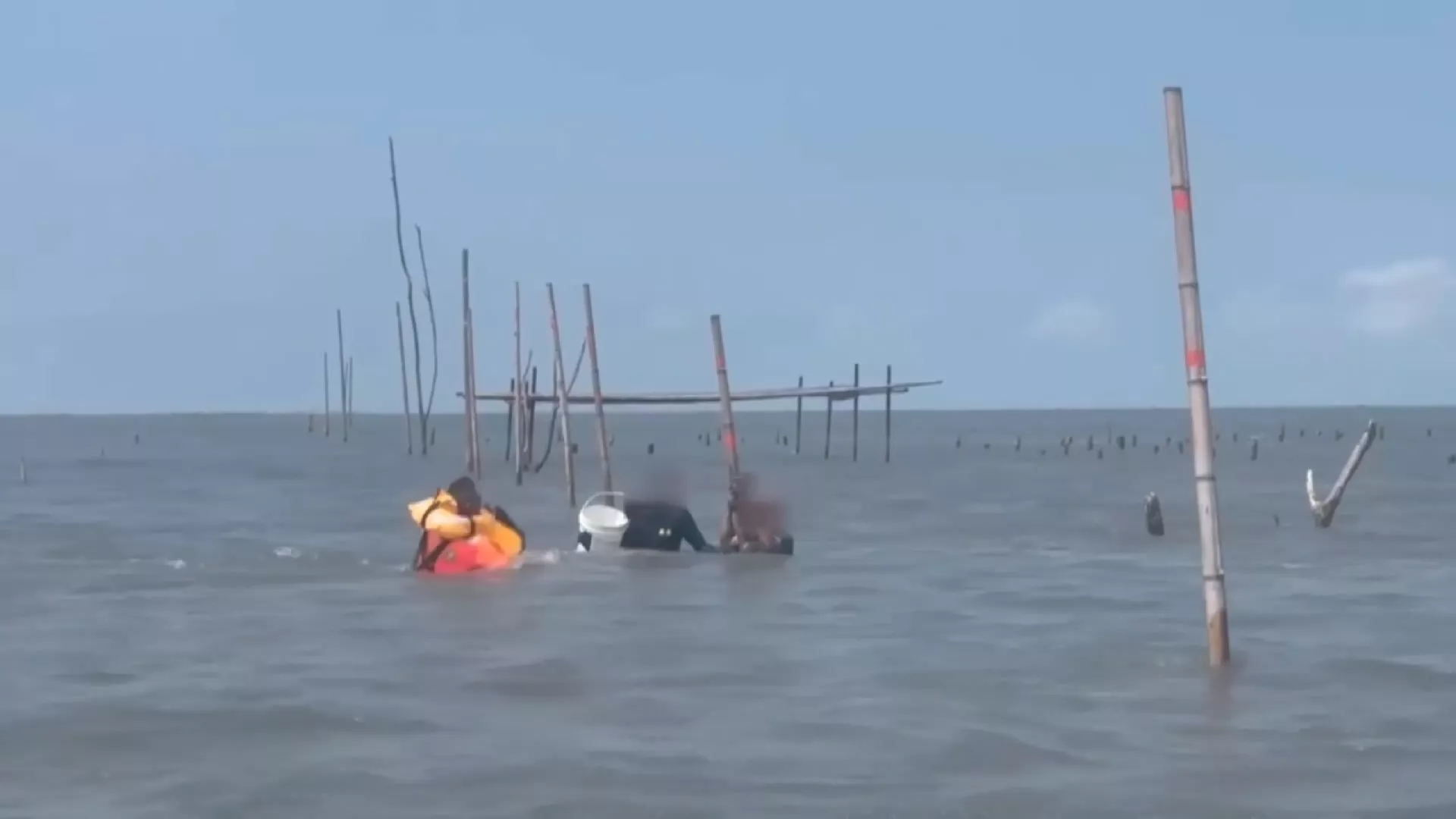描述: 彰化芳苑南蚵道今(19)日上午有2位民眾初次前往採捕貝類,不熟悉潮汐變化而受困海中,距離滿潮僅約1個小時,水深及胸情況危急,所幸在附近的海巡人員與漁民發現,及時將2人救上岸。
